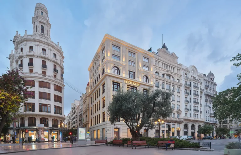 El Grand Hotel Centenari Valencia es un excelente ejemplo de más que un retrofit, se trata de una reutilización adaptativa. Cuando usamos el término retrofit nos referimos a modernizar o actualizar un edificio existente incorporando nuevas tecnologías, sistemas o mejoras (eficiencia energética, instalaciones, seguridad, confort…). No cambia la función principal del edificio, solo lo mejora. En el caso del Grand Hotel el proceso consistió en una reutilización adaptativa. Esta consiste en cambiar el uso original del edificio por uno nuevo (por ejemplo, convertir una fábrica en viviendas, un convento en museo o un edificio de oficinas en un hotel). Este proyecto conocido como el histórico edificio de Telefónica, concebido hace cien años por Santiago Esteban de la Mora e Ignacio de Cárdenas Pastor. Tras casi un siglo como sede emblemática, el inmueble renace como un hotel cinco estrellas que combina la herencia arquitectónica con un lujo contemporáneo, situado en plena plaza del Ayuntamiento.