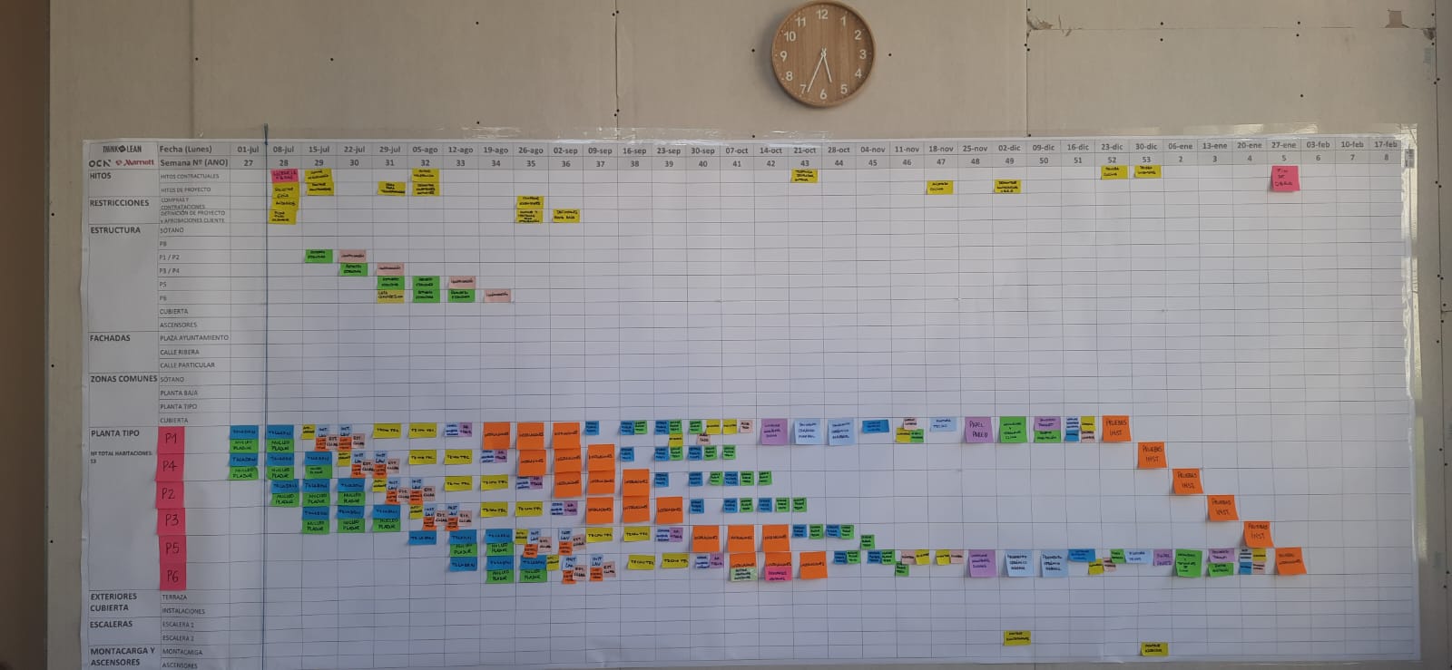 - Reuniones semanales de planificación colaborativa mediante Last Planner System, con paneles físicos y digitales.