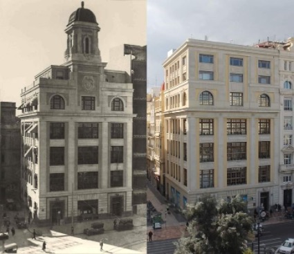 El Grand Hotel Centenari Valencia es un excelente ejemplo de más que un retrofit, se trata de una reutilización adaptativa. Cuando usamos el término retrofit nos referimos a modernizar o actualizar un edificio existente incorporando nuevas tecnologías, sistemas o mejoras (eficiencia energética, instalaciones, seguridad, confort…). No cambia la función principal del edificio, solo lo mejora. En el caso del Grand Hotel el proceso consistió en una reutilización adaptativa. Esta consiste en cambiar el uso original del edificio por uno nuevo (por ejemplo, convertir una fábrica en viviendas, un convento en museo o un edificio de oficinas en un hotel). Este proyecto conocido como el histórico edificio de Telefónica, concebido hace cien años por Santiago Esteban de la Mora e Ignacio de Cárdenas Pastor. Tras casi un siglo como sede emblemática, el inmueble renace como un hotel cinco estrellas que combina la herencia arquitectónica con un lujo contemporáneo, situado en plena plaza del Ayuntamiento.