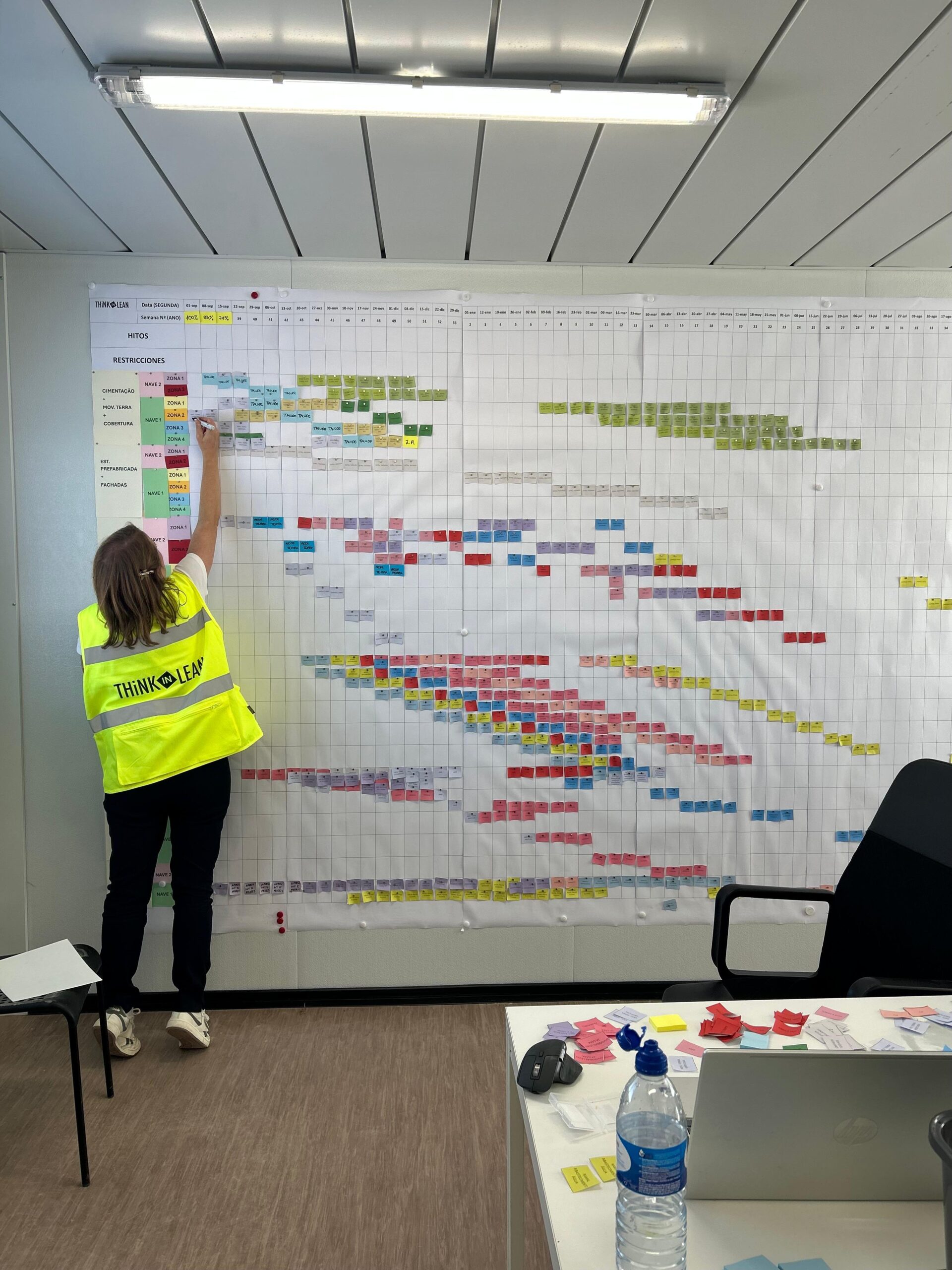 Think In Lean está acompañando la obra desde su inicio en Junio de 2025 a través de la implantación del Last Planner System. Durante los primeros meses, Junio y Julio, se realizó el Plan Maestro de forma remota y colaborativa. El equipo de Think In Lean realizó el Master plan completamente online contando con la participación del jefe de obra y el equipo de producción. En Agosto de 2025 se instaló la Big Room en las obras. Desde entonces se está realizando el seguimiento semanal de forma remota y presencial una vez al mes.