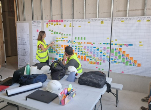 Facilitar reuniones semanales de planificación colaborativa aplicando el Last Planner System junto con los subcontratistas, apoyadas en la gestión visual de los paneles de la Big Room y complementadas con su versión digital para trazabilidad, generando en ambos formatos transparencia y acceso compartido a la información.